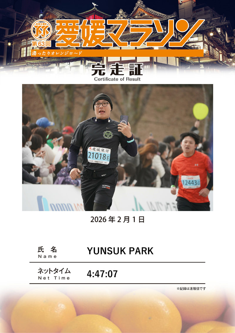 박실장 마쓰야마 에히메 마라톤 완주!! 9번째 풀코스
